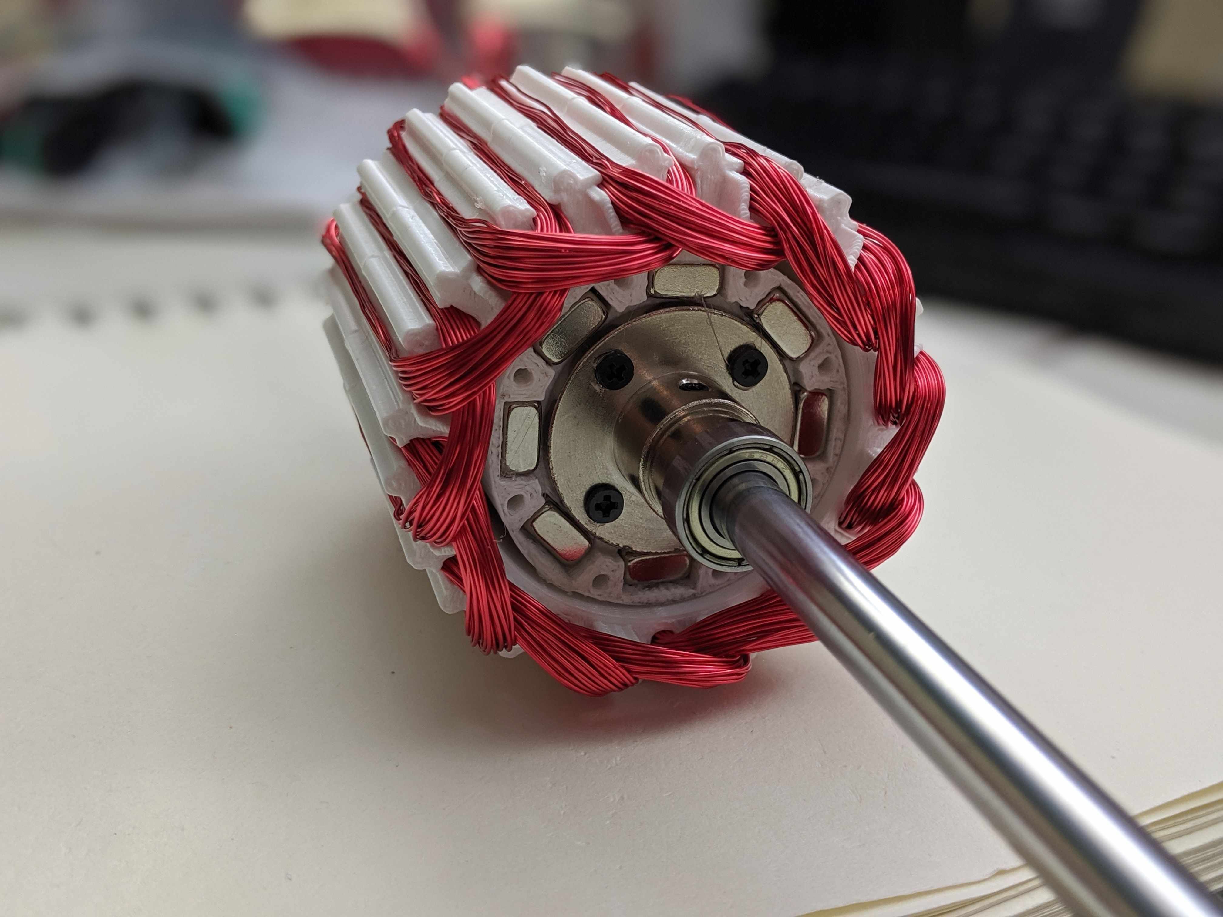 A brushless DC motor (BLDC) designed and built from scratch using 3D-printed parts and off-the-shelf hardware.