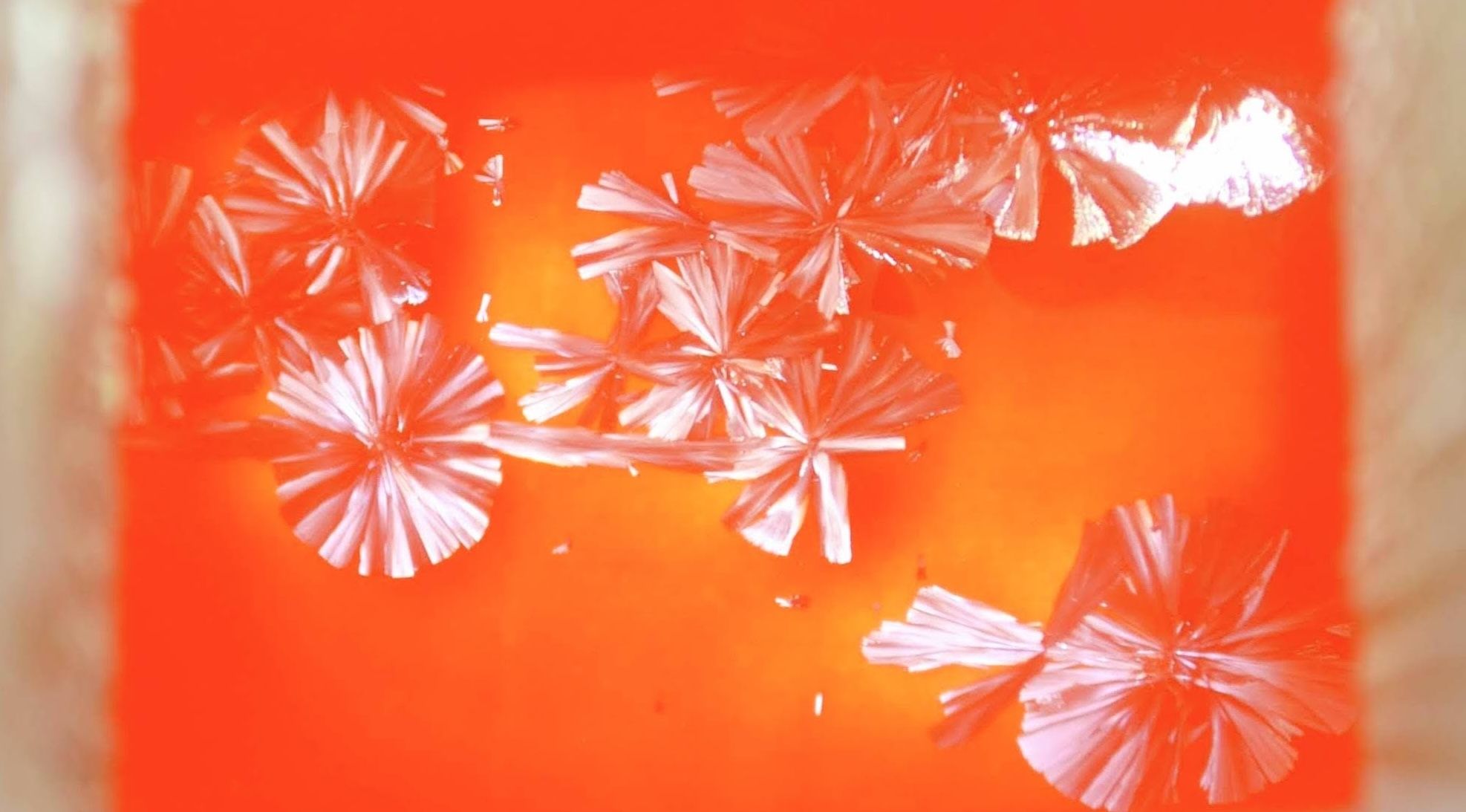 Time-lapse of zinc silicate crystals forming in a kiln during a glaze firing. Visualizes the growth process over several hours.