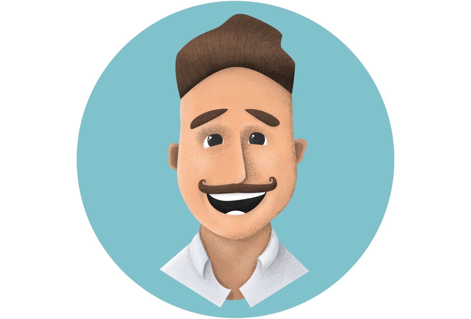 A portrait exercise turning a pencil sketch into a warm, grain-shaded illustration in Photoshop.